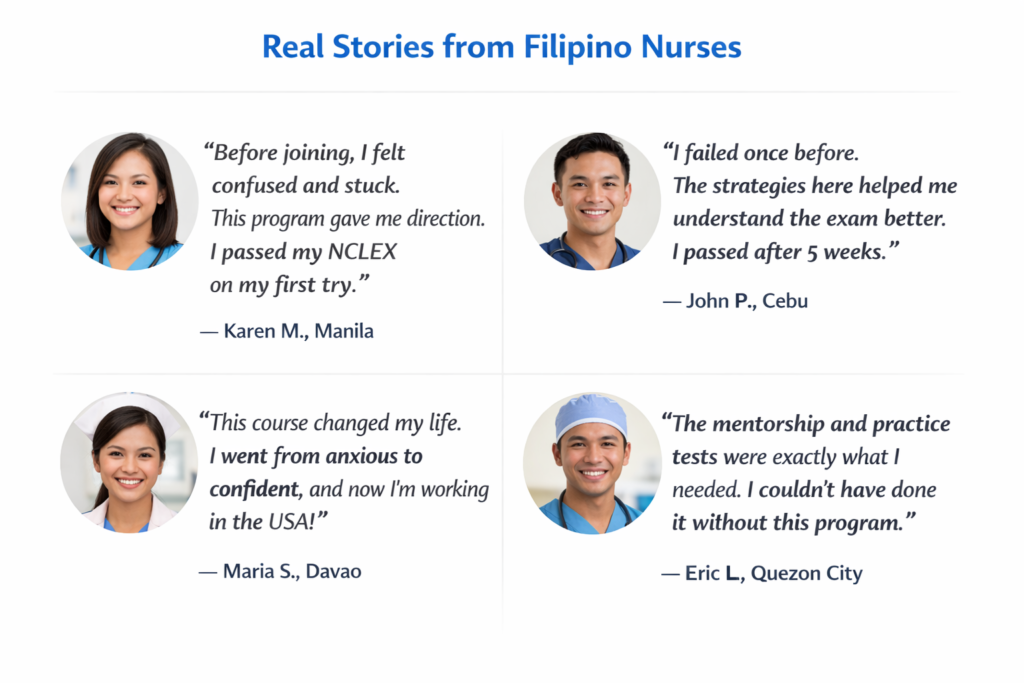Stop guessing. Start preparing with a clear system designed for Filipino nurses who want to pass the NCLEX and work abroad.